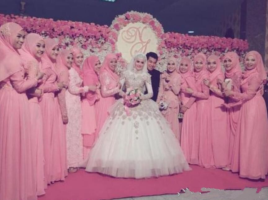 Long Sleeve Muslim Wedding Chiffon Bridesmaid Dresses Lace ...